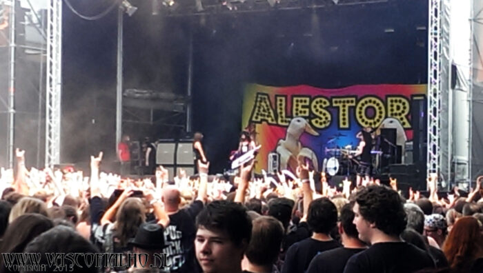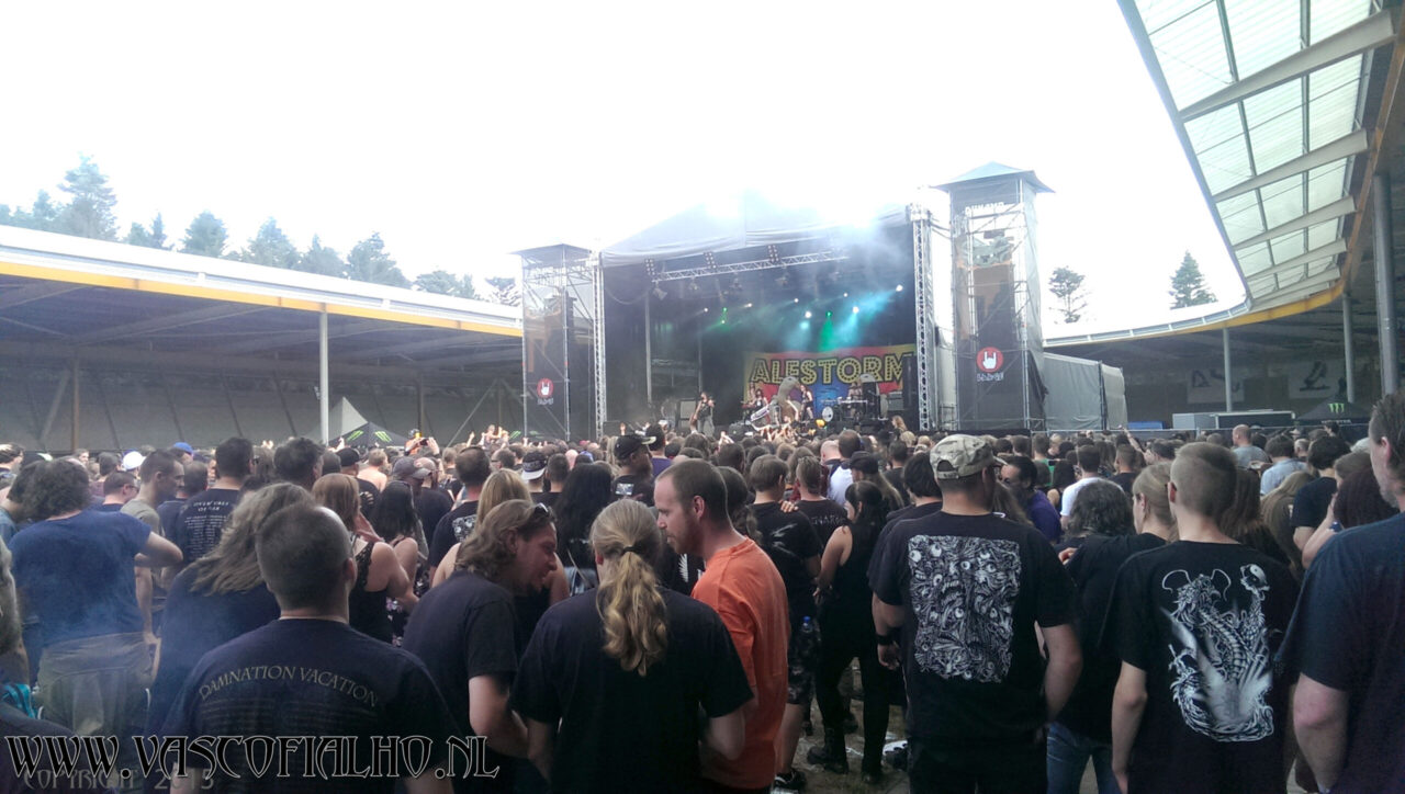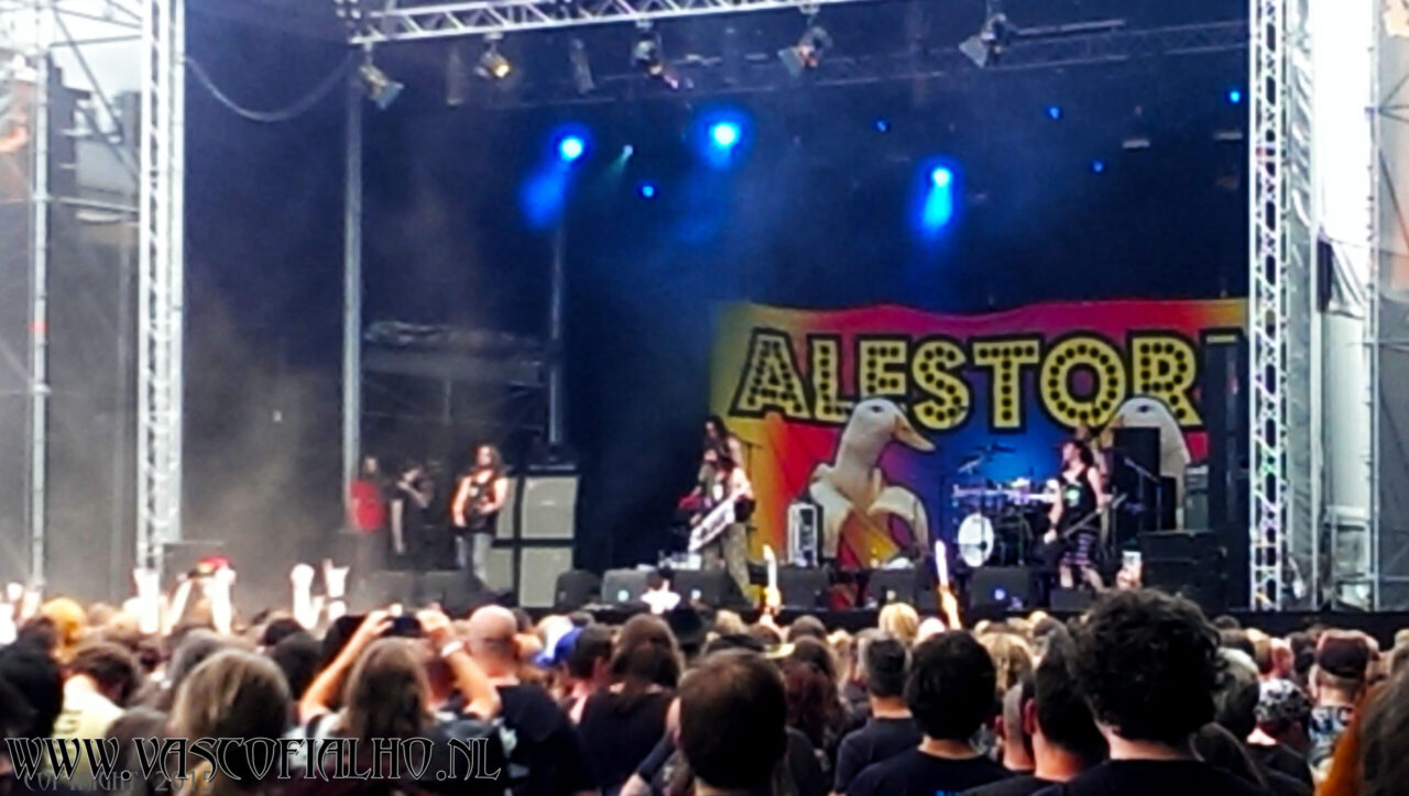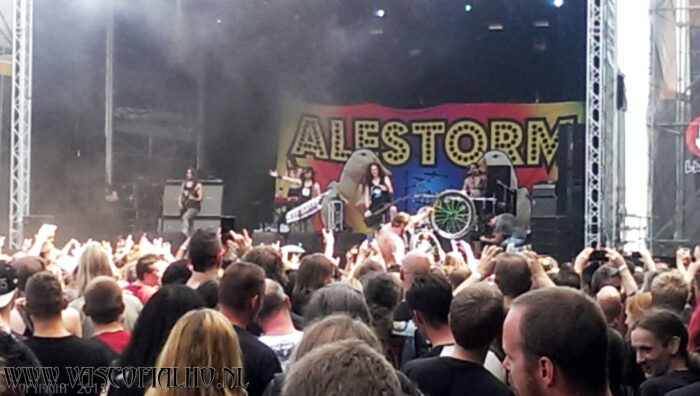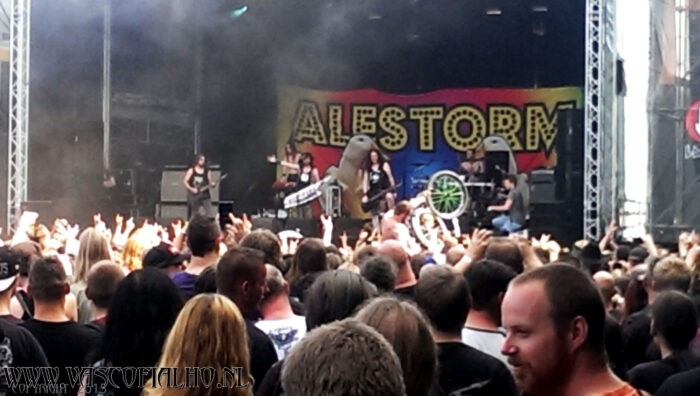 Next up was Alestorm. I finally got why there were so many pirate hats walking about the festival. I had truly never heard of these guys. Musically not really my cup of tea, or mug of beer for that matter, but it was a fun show to watch. Pirates are out to steal our beer… They can go ahead… I don’t drink anyway.. ;). I enjoyed this show from the back of the festival ground. This was the moment I went for a big bag of fries.