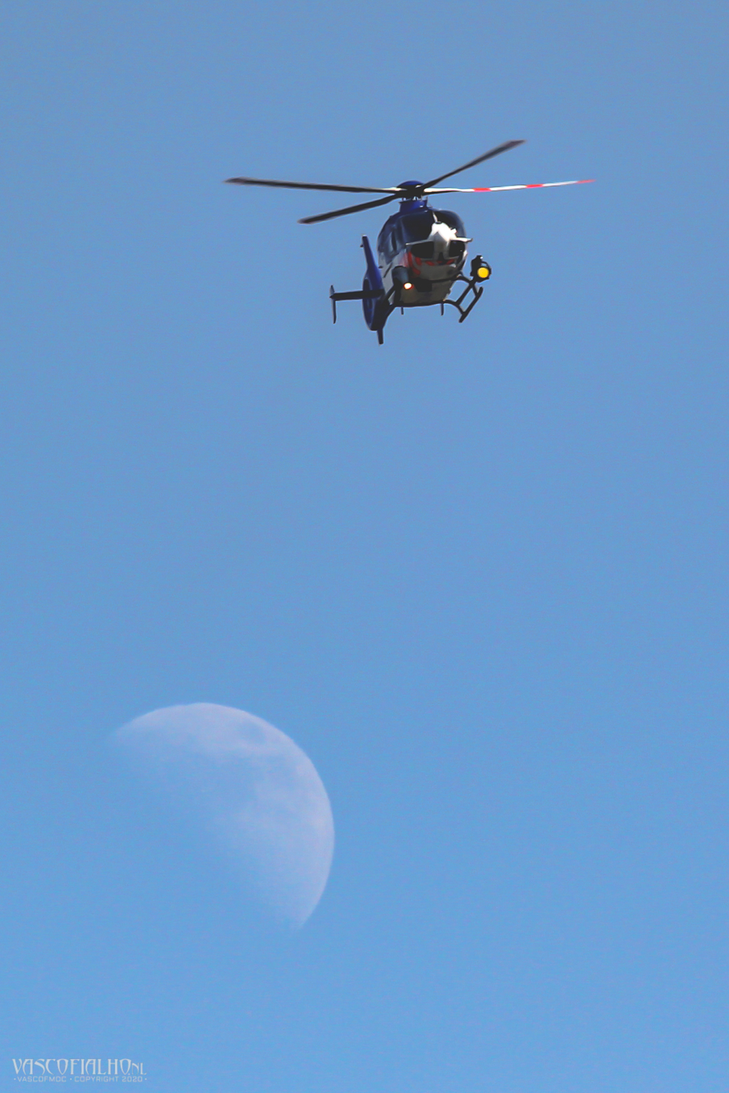 Police chopper flying over the moon