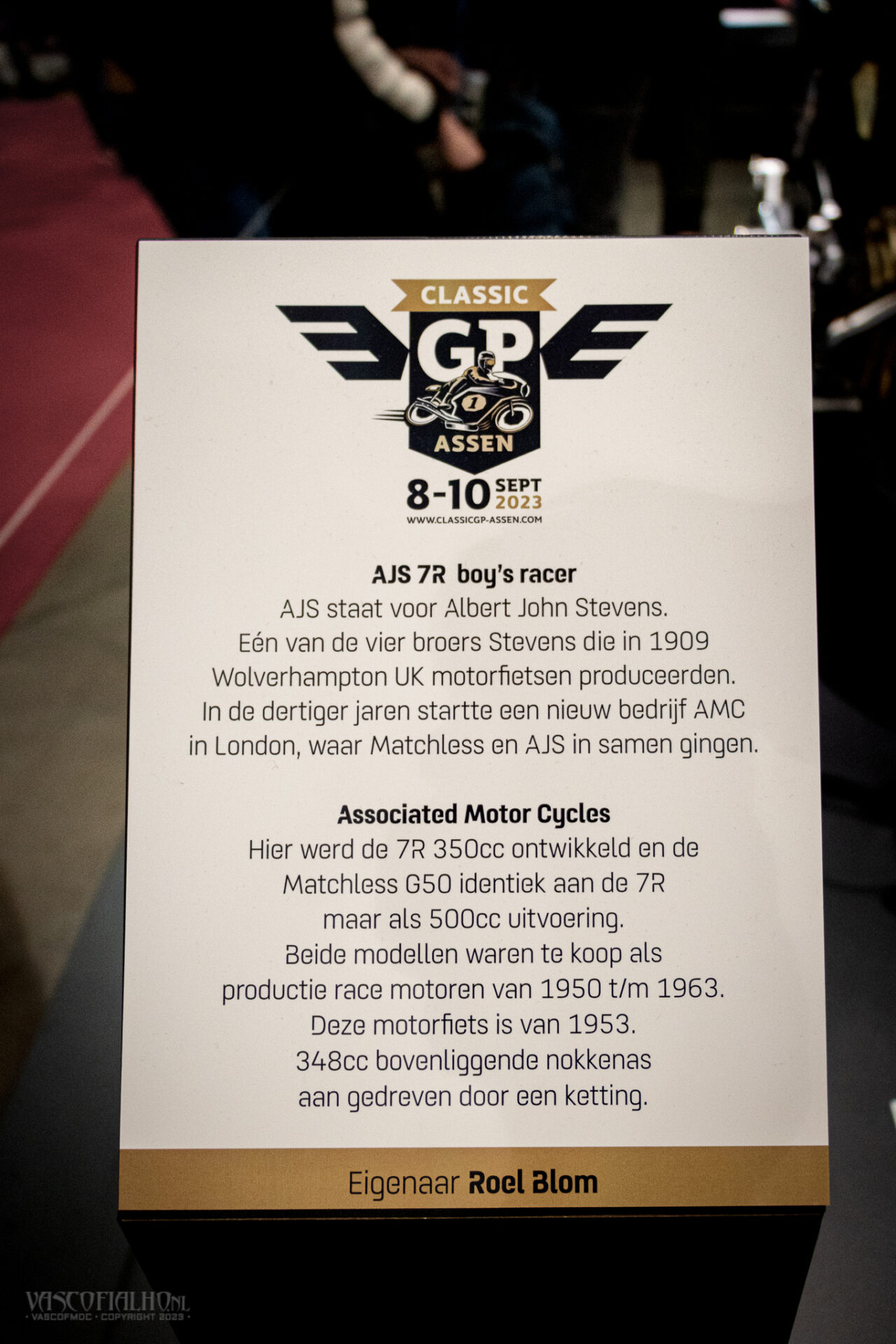 Hier werd de 7R 350cc ontwikkeld en de Matchless G50 identiek aan de 7R maar als 500cc uitvoering. Beide modellen waren te koop als productie race motoren van 1950 t/m 1963. Deze motorfiets is van 1953. 348cc bovenliggende nokkenas aan gedreven door een ketting.