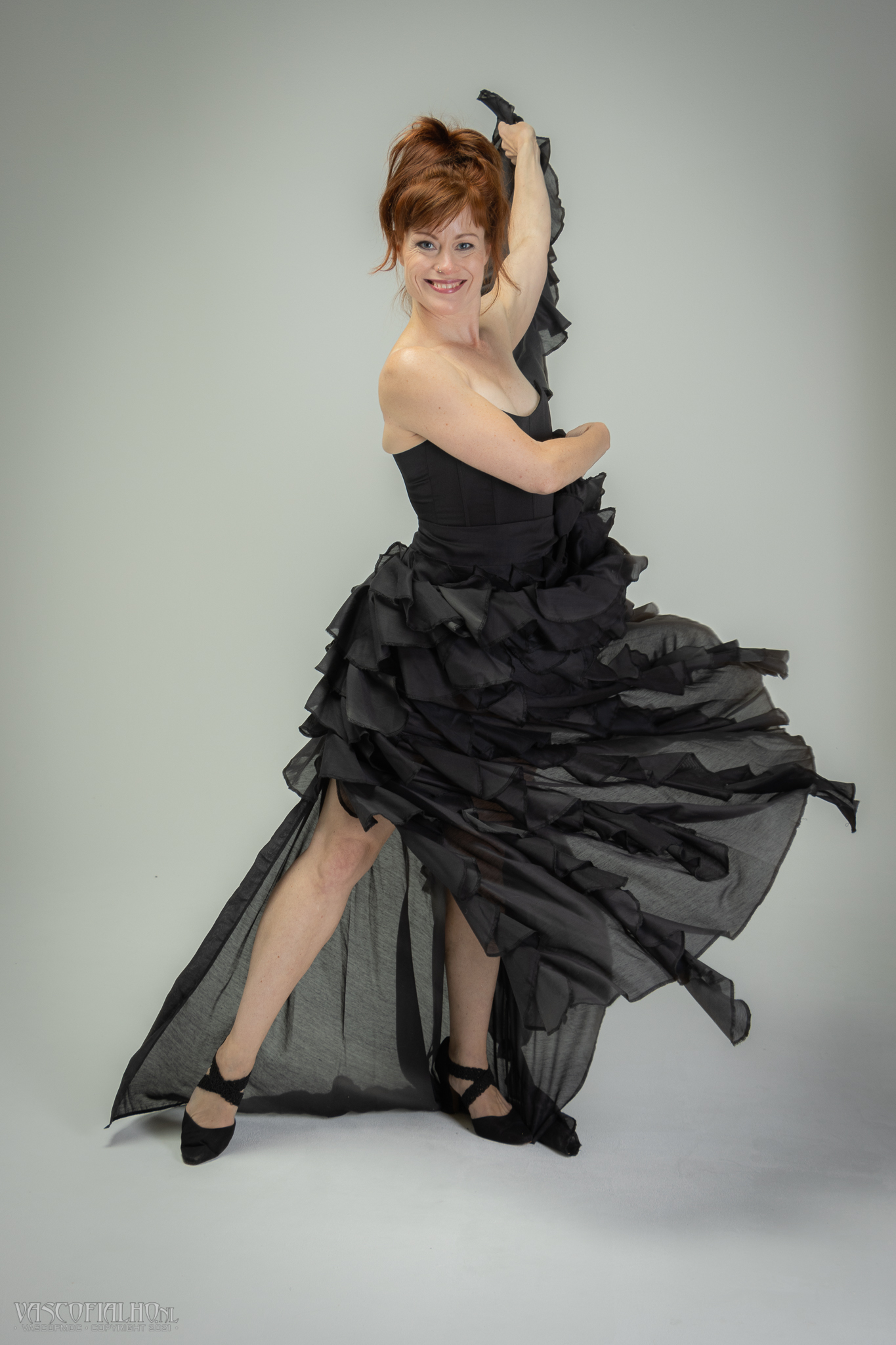 When Simone entered the studio wearing this dress, the first thing that came to mind was "Flamenco". It was the best dress ever to show movement....