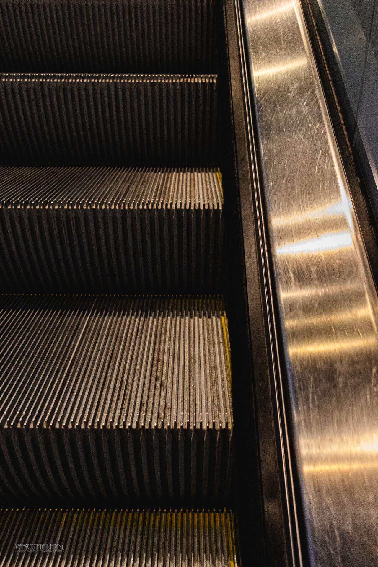 De roltrappen dragen me omhoog en omlaag, terwijl de drukte van de reizigers en het zachte gezoem van de metro een ritmisch achtergrondgeluid vormen.
